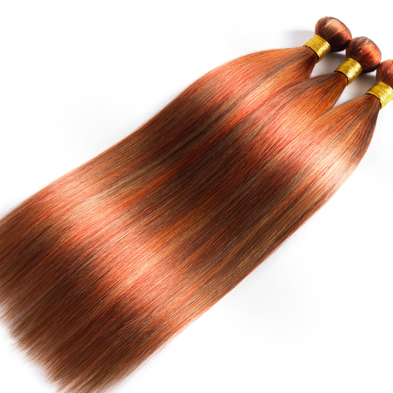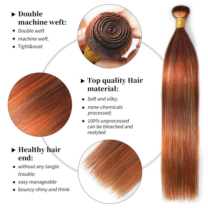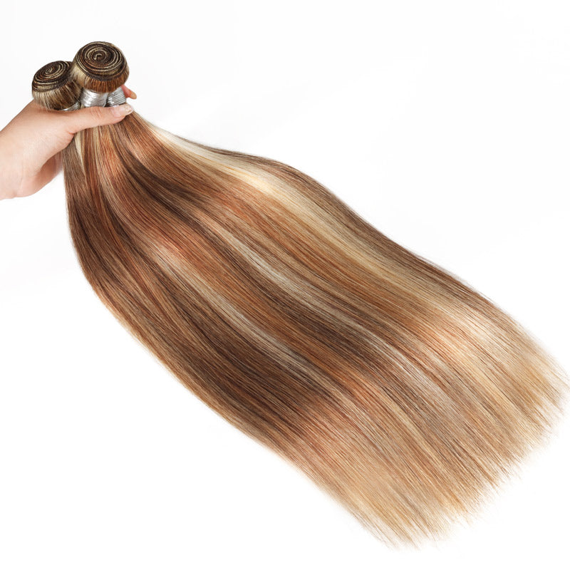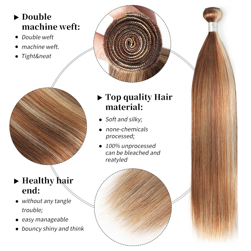RhisoHair P4/27/613 Mix Brown Highlight Human Hair Straight Hair 3Bundles 100% Brazilian Virgin Remy Hair