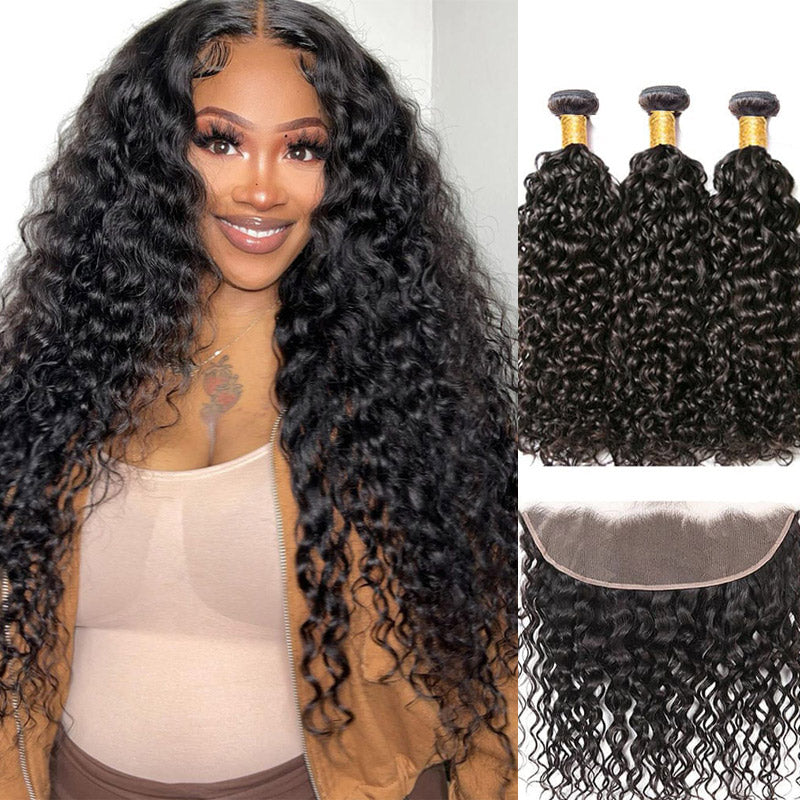 Water Wave 3 Bundles With 13x4 Transparent Frontal 100% Human Hair